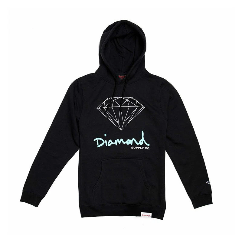 Diamond OG Script Mens Hoodie – Black / Blue. High quality long sleeve Sweat Hoodie by Diamond Supply Co. that looks great anywhere. Black Hoodie with Diamond Script Logo in Diamond Blue.
