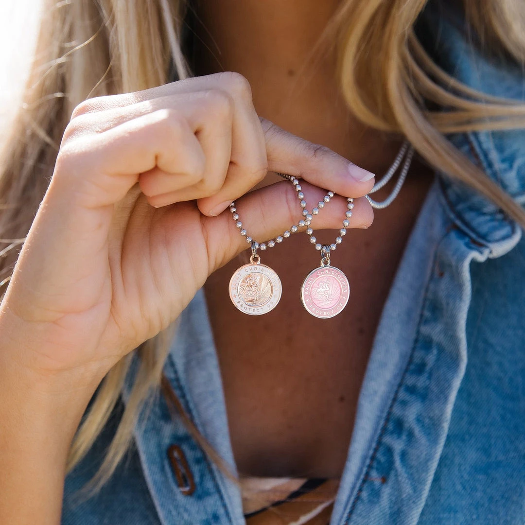 Take a piece of Southern California home with our cute and dainty “St Christopher Necklace”. Get Back St. Christopher Pendants are available in larger sizes making them perfect for layering jewelry.