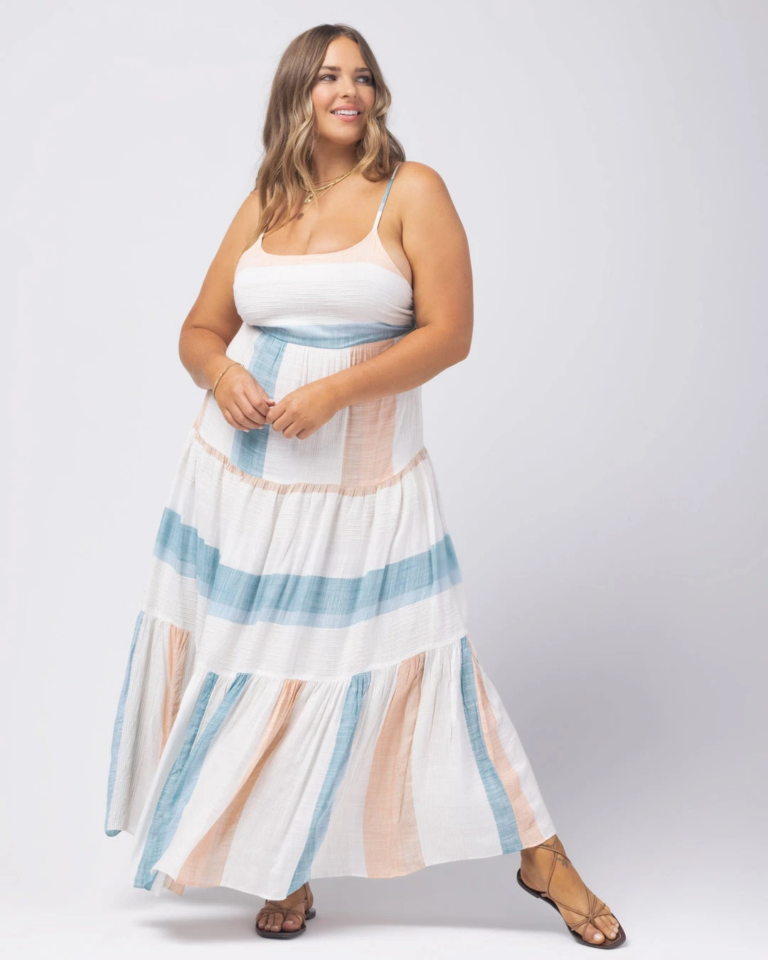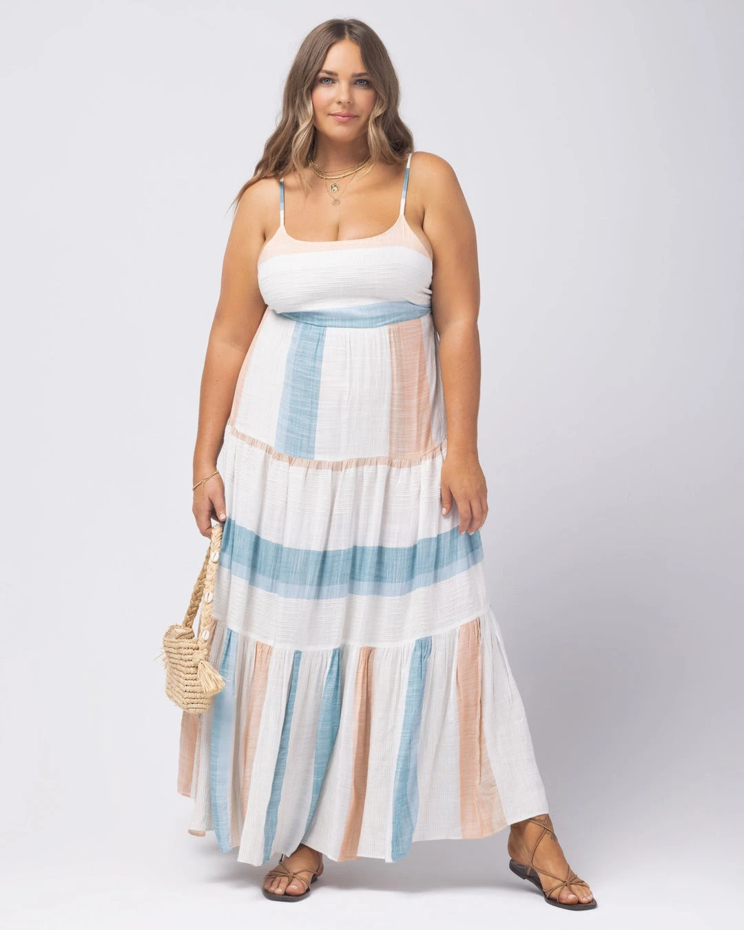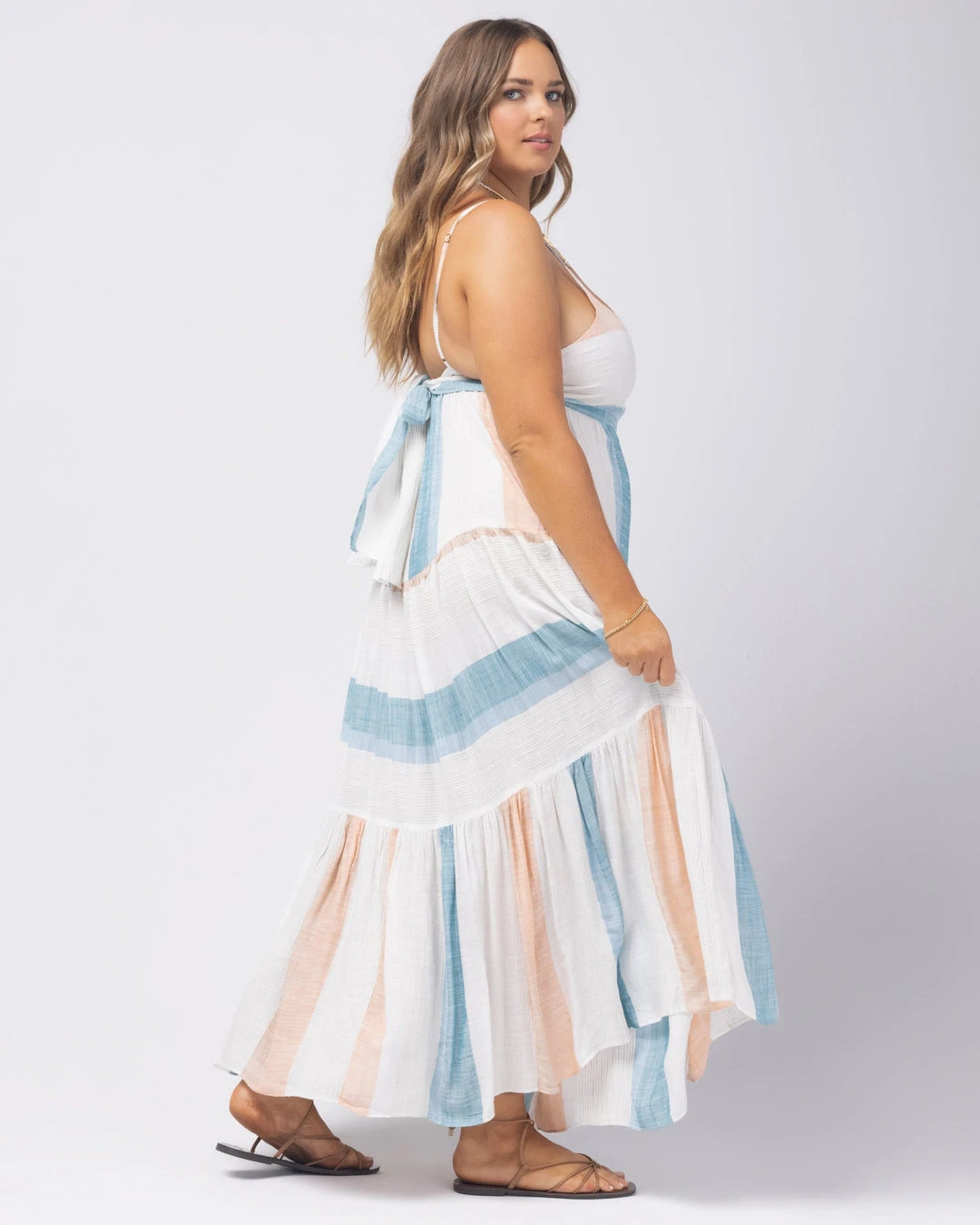 Nothing says simply pretty better than the Santorini Dress. This full length dress features a flattering low back, adjustable back tie, and tiered skirt. Perfect for your next summer picnic, Sunday brunch, or sunset beach stroll.